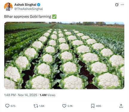 As Alishan Jafri reminds us, the ‘cauliflower’ reference “is understood to point to the … village of Logain in Bhagalpur where 110 Muslims were buried in a farm and cauliflower saplings planted over their dead bodies. In recent years, this reference has been revived by alt-right groups.”