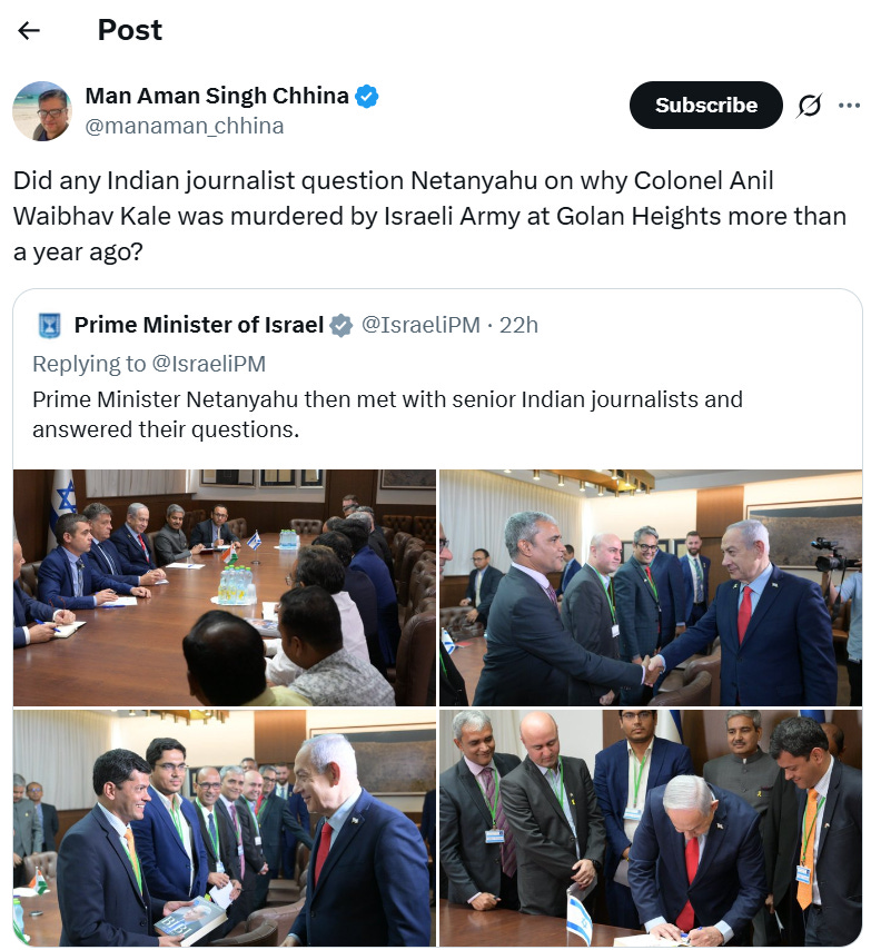 Meanwhile, Israeli Prime Minister Benjamin Netanyahu met in Jerusalem with India’s Ambassador to Israel, J.P. Singh, to discuss strengthening bilateral ties between the two nations. The two leaders focused on expanding cooperation, particularly in security and the economy. Following the meeting, Netanyahu spoke with senior Indian journalists. The journalists seemed to be charmed and overawed meeting him. One had carried his book with him to get it autographed, another said that Netanyahu had, in an answer to his question, said that “Israel will not annex Gaza.” Though there’s also this, a plan by Israel to let the IDF take over Gaza, which clearly contradicts this claim.