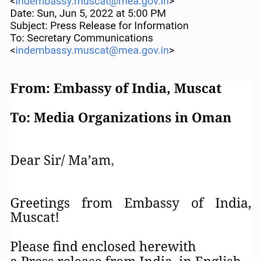 And going by the conduct of the Indian embassy in Muscat, Indian diplomats are now an extended arm of the BJP. It was emailing the ruling party’s statements on the crisis triggered by BJP leaders Nupur Sharma and Naveen Kumar to local media houses as a statement from India.