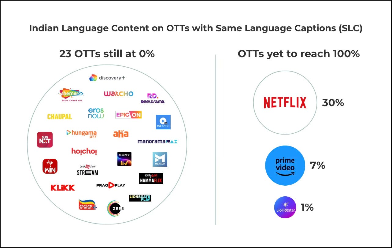 Globally, including in India, all English language content on streaming or Over-The-Top (OTT) platforms offers English captions. We owe this to the National Association of the Deaf (NAD) in the US. In 2012 NAD reached a settlement with Netflix to provide captions on 100 percent of its streaming content within two years of the settlement date.