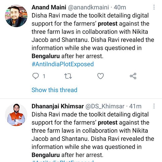 The cost of shining up India’s image by harassing young climate activists will be obvious soon enough. But mystifyingly, Twitter notified Haryana Home Minister Anil Vij that it did not find that his obnoxious tweet – calling for “anti-nationals” like Disha Ravi to be “destroyed from the roots” – required removal under its rules. Also, the actions of the police will definitely become material to legal proceedings.