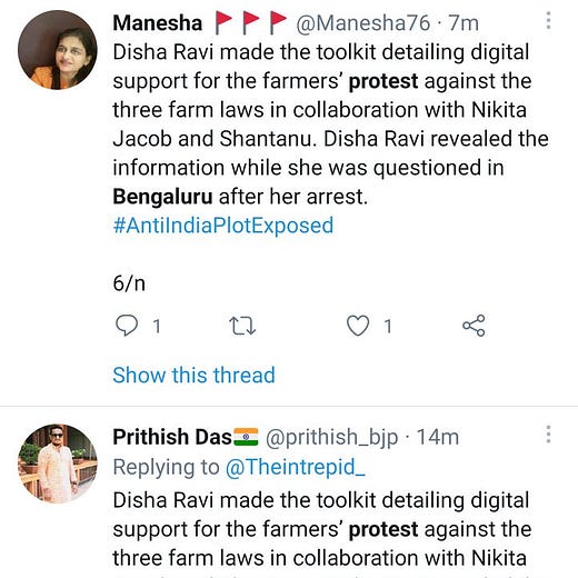 Toolkit mania has not ended with the remand of Disha Ravi, the 22-year-old climate activist from Bengaluru who has been arrested in connection with the Greta Thunberg toolkit case, and has asked the Delhi court what was wrong about supporting farmers. Shantanu Muluk and lawyer-activist Nikita Jacob are also cited as accused by the Delhi Police in connection with the Google document that Greta Thunberg had posted. Shantanu and Nikita have sought transit anticipatory bail. Delhi Police has accused Nikita, Shantanu and Disha of creating the toolkit document “to tarnish India’s image”.