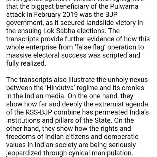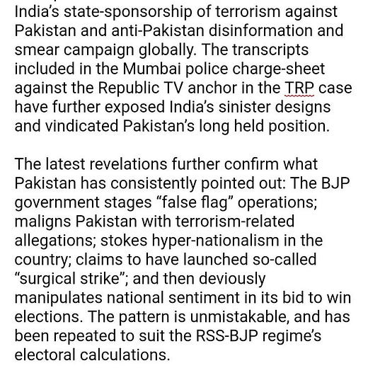 The chats of Republic TV owner-editor Arnab Goswami and former ratings agency CEO Partho Dasgupta, released by the Mumbai Police as part of its chargesheet in a viewership fixing case, suggest that he had advance knowledge of the Balakot operation, and was exultant about its political effects. A 2019 report by Reuters accurately lays out the slide in Narendra Modi’s political fortunes before the Pulwama attack, which was surgically corrected by the Balakot operation before the general election. A statement by the Ministry of Foreign Affairs of Pakistan alleges that Balakot was for domestic consumption.